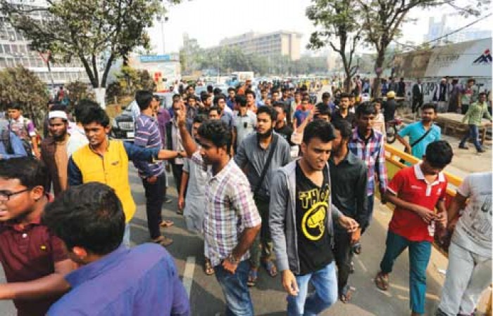 the rule. Then the students sat on the street and made a scuffle with cops,’ DU proctor AM Amzad told.