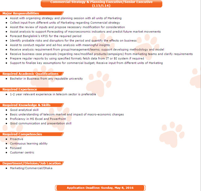Post : Commercial Strategy and Planning Executive/ Senior Executive