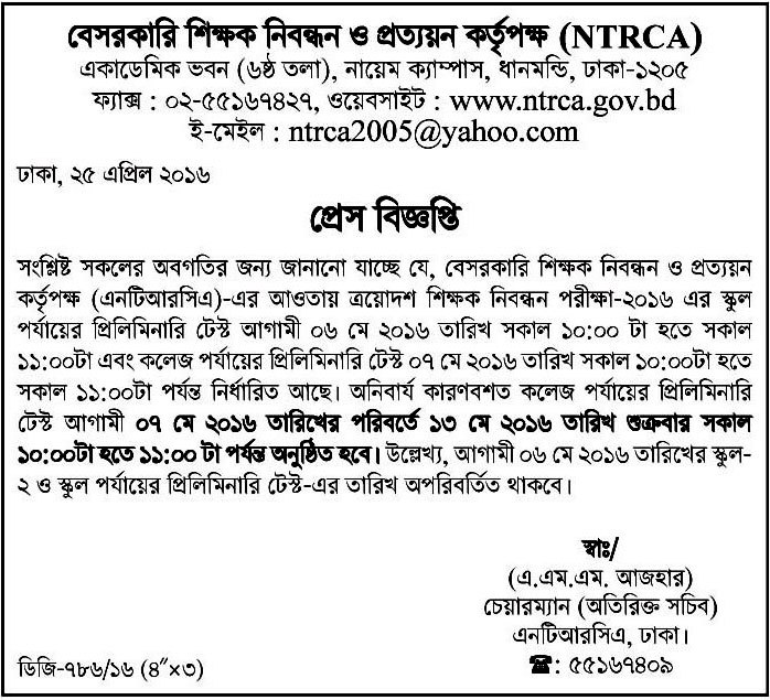 Candidate will be face the exam total marks 200, operational subject MCQ marks 100 and compulsory subject 100 marks written exam. 13th NTRCA Exam Circular Online Apply Result 2015 will be published very soon.