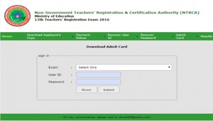 13th NTRCA Admit Card Download 2016 will be found a website. Non-Government Teacher Registration & Certificate Authority (NTRCA) has been published 13th teacher registration online apply process 2016.