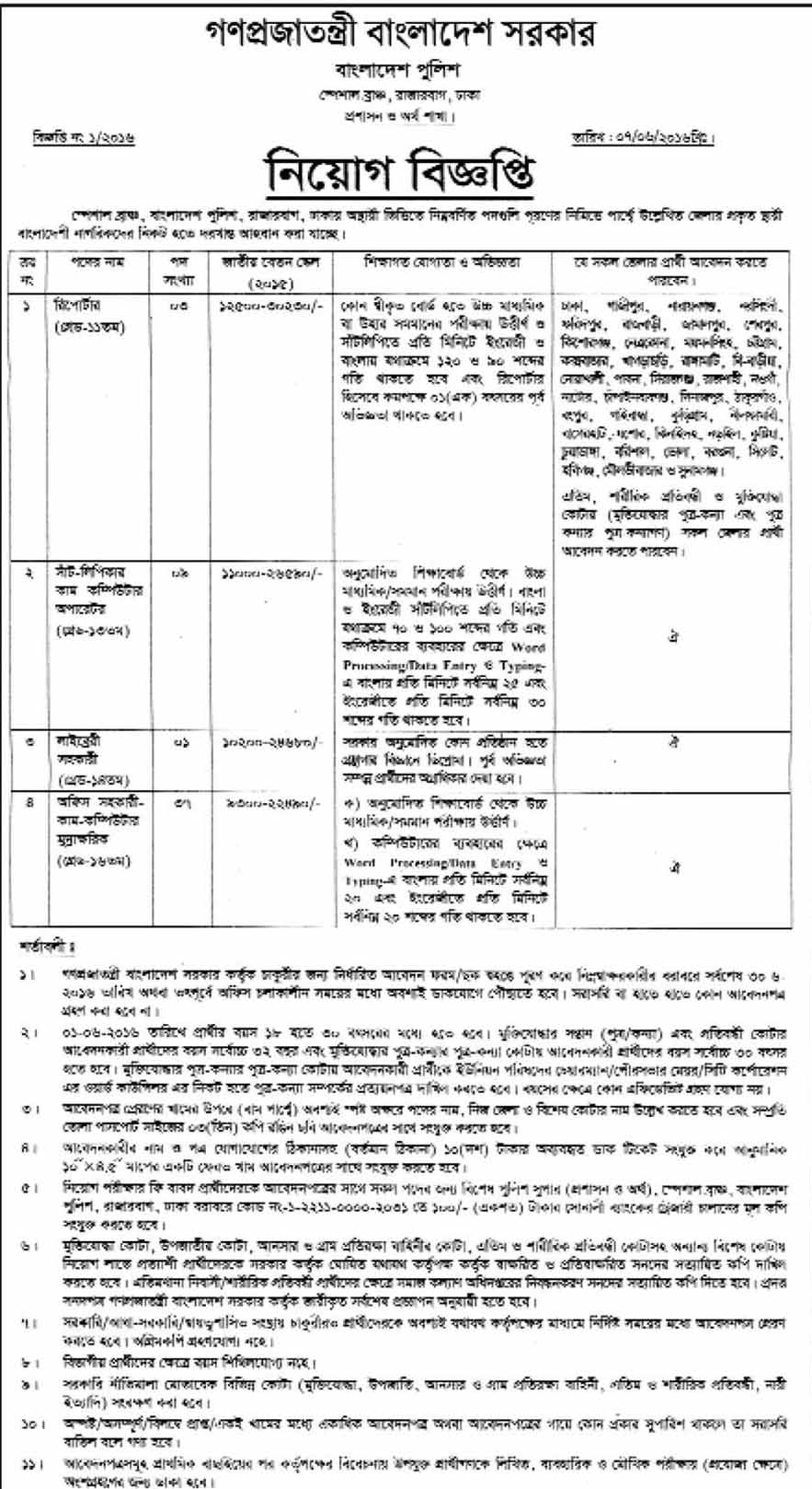 Special Branch (SB) of Bangladesh Police will recruity several manpower. Details are given here -