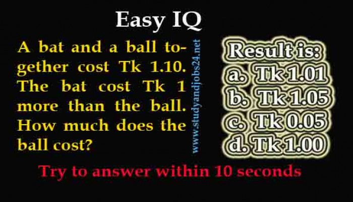 A bat and a ball together cost Tk 1.10.