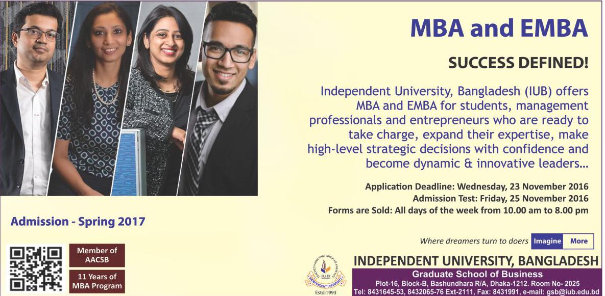 Independent University, Bangladesh Offers MBA and EMBA for students and Professionals.