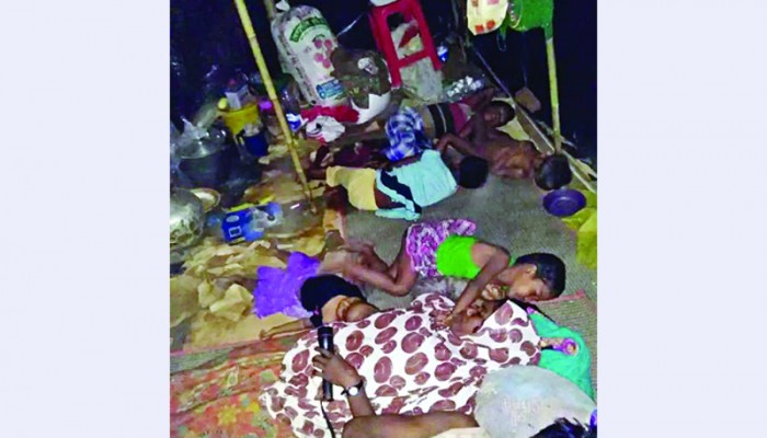 গত শুক্রবার রাত সাড়ে ১২টার দিকে দেখা গেল, একটি তাঁবুর সামনের খোলা অংশে বসে দুই ব্যক্তি প্রস্রাব করছে। কয়েক গজের মধ্যে মাটিতে বিছানো পলিথিনে এলোপাতাড়ি পাঁচ শিশুসন্তান নিয়ে শুয়ে আছেন তাদের মা-বাবা।