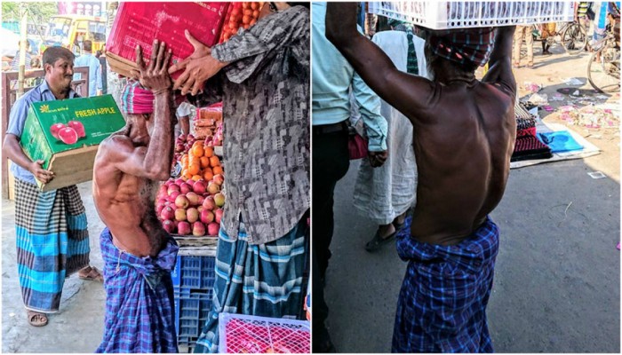 বয়স তাঁর ষাটের ঘরে। ২৭ বছর ধরেই চলছে বোঝা বইবার পেশা।