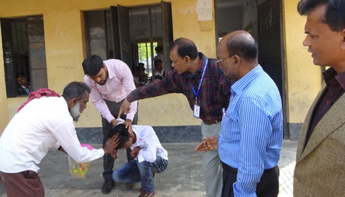 বৃহস্পতিবার সকাল পৌনে ১১টার সময় কেন্দ্র পরিদর্শক ও উপজেলা সমাজসেবা অফিসার রফিকুল ইসলামের উপস্থিতে এ ঘটনা ঘটে। প্রহৃত শিক্ষার্থীকে কেন্দ্র পরিদর্শক রফিকুল ইসলাম ও কেন্দ্র সচিব মো.আশরাফুল ইসলামসহ অন্যান্য শিক্ষকরা মাথায় পানি ঢেলে সুস্থ করেন।