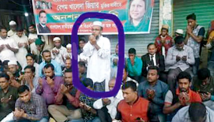 বাহুবলে অনশন কর্মসূচিতে খালেদা জিয়ার জন্য আবেগঘন মোনাজাত পরিচালনাকালে বিএনপি নেতা মাওলানা কাজল মিয়া।