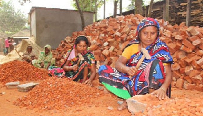 টুশটাস হাতুড়ির শব্দ। কঠিন ইটের গায়ে আঘাত হেনে চলছে কোমল হাতে ধরে থাকা হাতুড়ি। ইট ভাঙার শব্দ। ইট ভাঙা হচ্ছে রাস্তার পাশে, বাড়ি আঙ্গিনায় বসে। কোথাও আবার ঘরের বারান্দা কিংবা রান্নাঘরের ভেতরেই চলছে ইট ভাঙার কাজ। বিভিন্ন বয়সী নারী এ কাজ করছে। কোনো স্থানে একা একা, কোনো স্থানে আবার দলবদ্ধভাবে।