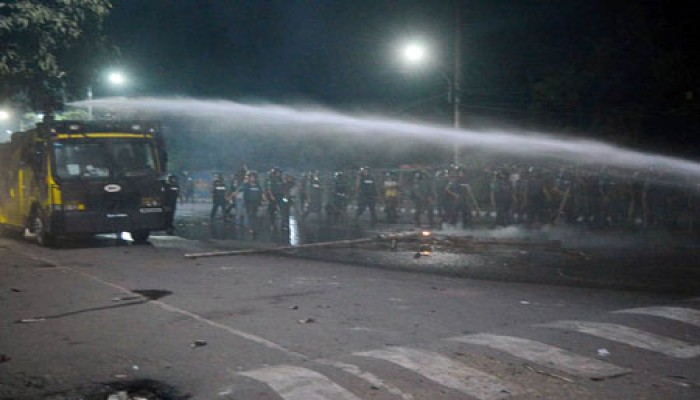 শাহবাগ মোড়ে সন্ধ্যা ৭টা ৫০ এর দিকে পুলিশ আন্দোলনকারীদের ধাওয়া দেয়। এ সময় লাঠিপেটাও শুরু করে পুলিশ। একই সঙ্গে ছোড়া হয় কাঁদানে গ্যাসের শেল।